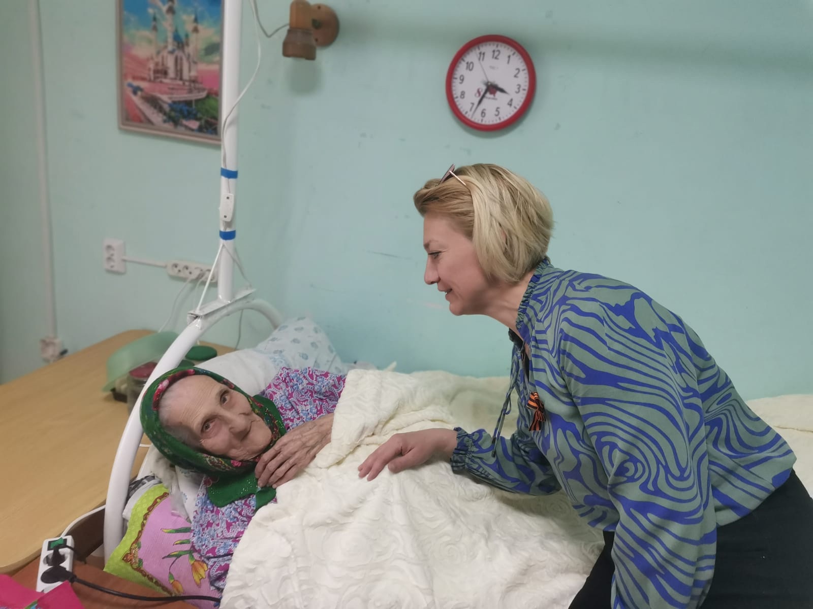 Председатель профсоюза работников здравоохранения Чистопольского муниципального района Татьяна Холоденина и сотрудники ЦРБ навестили героев торжеств и вручили им продуктовые наборы.