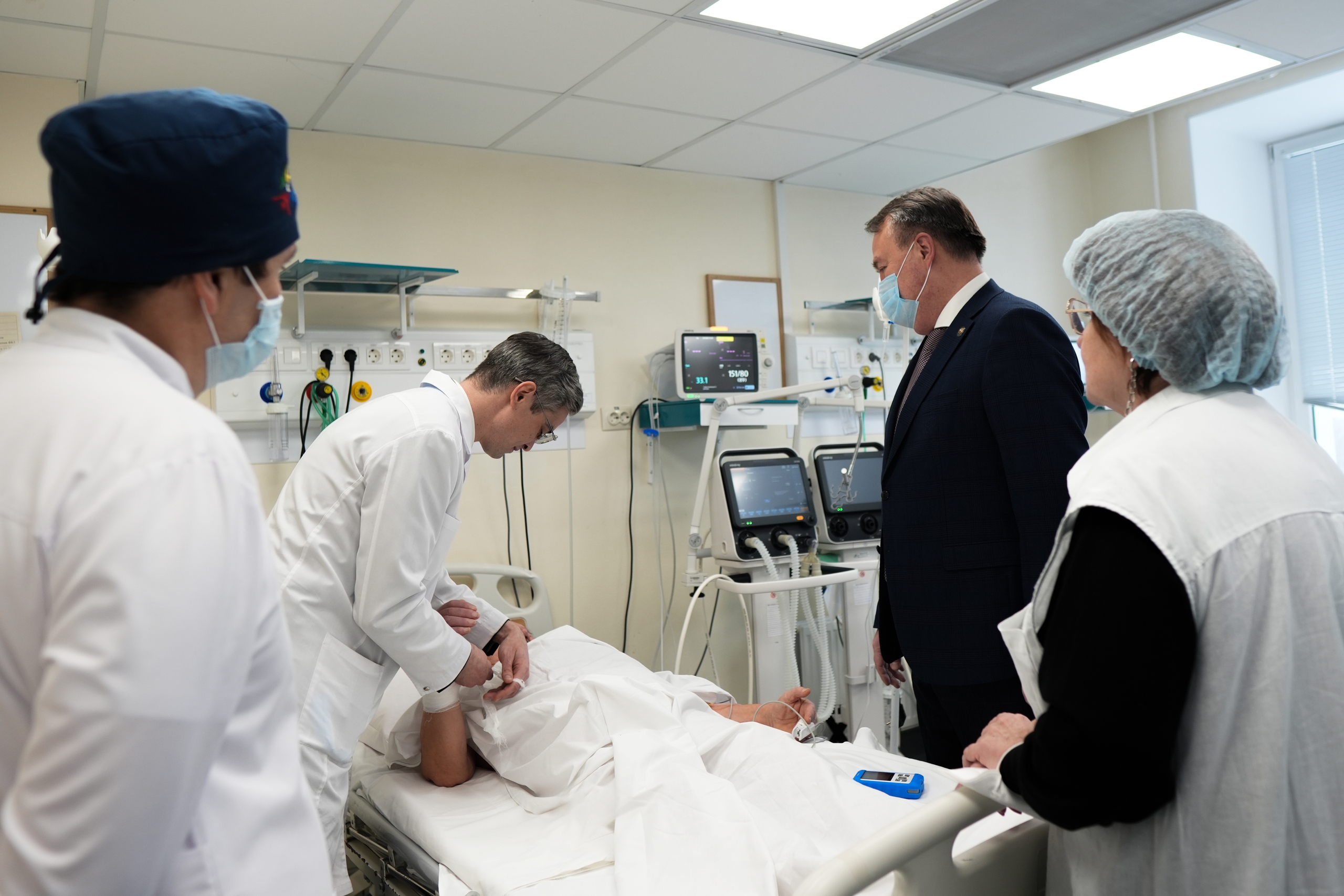 После посещения ЧКВ-центра министр здравоохранения поднялся в отделение интенсивной терапии и реанимации, где навестил первого пациента, страдающего ишемической болезнью сердца, которому сегодня в ЧКВ-центре была проведена коронарография. Альмир Рашидович поинтересовался самочувствием пациента и пожелал скорейшего выздоровления.